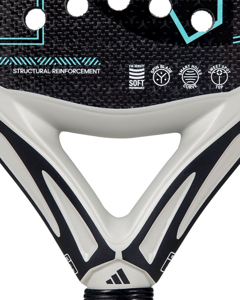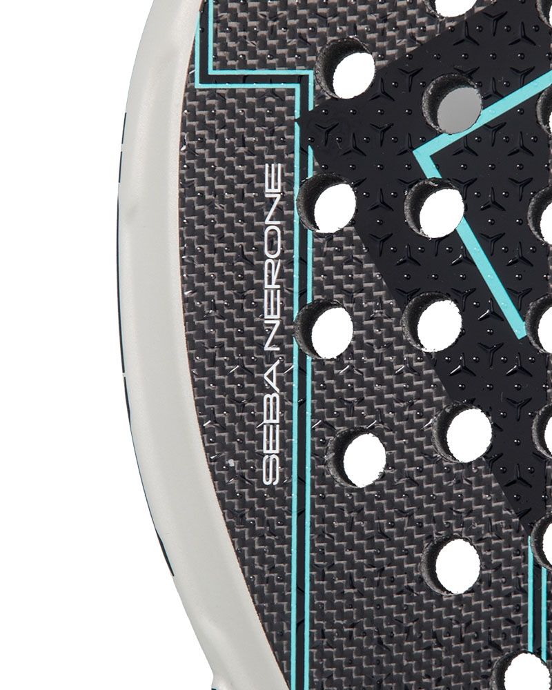 Con un peso de 360-370 gramos y una superficie de carbono 3K, ofrece una combinación perfecta de ligereza y rigidez, asegurando una respuesta firme sin comprometer el Control. Su núcleo de Eva Soft Performance proporciona un tacto medio y una excelente absorción de impactos, ideal para mantener la comodidad durante los golpes más intensos.