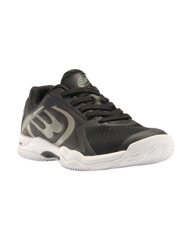 Descubre las zapatillas de pádel Bullpadel Beker 24I en colores negro y kaki, diseñadas para jugadores de nivel medio o principiantes que buscan un calzado flexible y cómodo. Su tejido de malla mesh asegura una transpirabilidad excelente, manteniendo los pies frescos incluso en los juegos más intensos. La suela de caucho con diseño en espiga tradicional ofrece un agarre firme en diferentes tipos de pistas, especialmente en aquellas con mayor cantidad de arena.