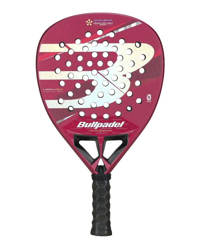 La Bullpadel Hack 04 Tour Final 25 llega directamente del Premier Pádel Final, diseñada para elevar tu juego al máximo. Más veloz, más potente y más precisa, redefine la competencia al más alto nivel. Su estructura agresiva y diseño orientado al ataque permiten una aceleración impresionante, encendiendo la bola con cada golpe.