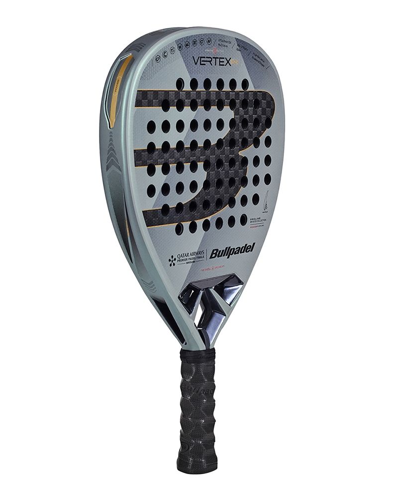 La Vertex 04 Tf 2024 de Bullpadel es la herramienta definitiva para quienes buscan llevar su juego al máximo nivel. Con su diseño en forma de Diamante, balance elevado y un peso que oscila entre 365 y 375 gramos, esta Pala es ideal para un juego que combina potencia y versatilidad. Su estética en gris metálico con detalles dorados y rojo vibrante refleja pasión, exclusividad y determinación. Creada en colaboración con Juan Tello, es una edición especial para el Premier Padel Tour Final.