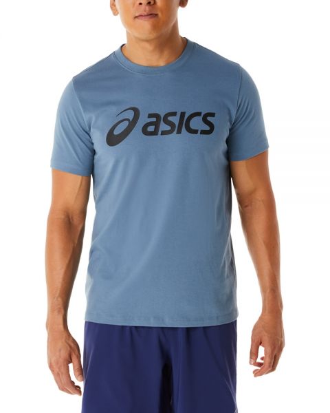 Camiseta Asics Big Logo Tee Azul, tiene un diseño básico y clásico con el logo al frente en el pecho de color negro, es una camiseta de ajuste semiholgado que te proporcionará frescura y comodidad al desplazarte por la pista,