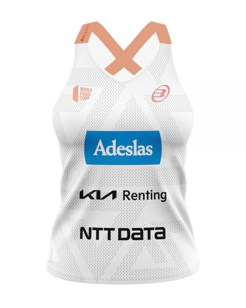 Disfruta de la nueva camiseta Bullpadel Acoda en color blanco para mujer que te hará destacar en la pista con un increíble diseño oficial de Alejandra Salazar.