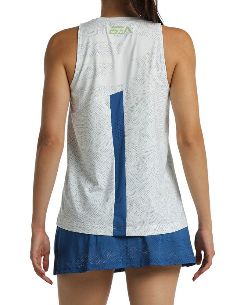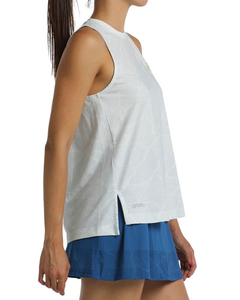 Fabricada con tejido técnico Drylum, que combina nylon y elastano, garantiza un secado rápido y evita la acumulación de humedad, asegurando una sensación de frescura constante. La parte trasera cuenta con perforaciones láser que optimizan la ventilación, mientras que las aberturas laterales proporcionan un mayor confort y libertad de movimiento. Su diseño se completa con detalles prácticos que refuerzan su estilo deportivo, convirtiéndola en una opción versátil para cualquier equipación.
