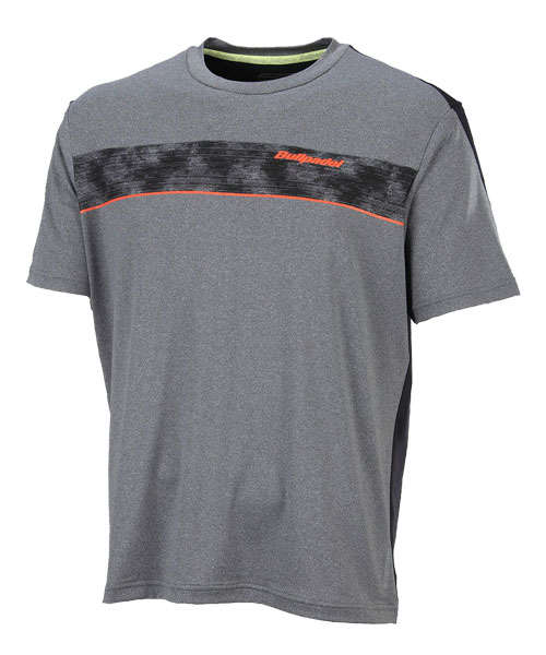 Camiseta ligera que permite apartar la humedad y el sudor de la piel. Diseño clásico en color grafito con una franja naranja ideal
