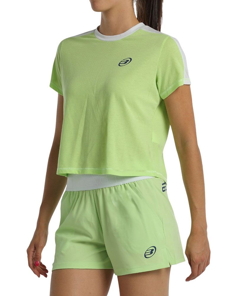 La Camiseta Bullpadel Bilma Mujer está diseñada para ofrecer frescura y comodidad en cada partido de pádel. Su confección en tejido de rejilla de poliéster combinado con algodón proporciona una sensación ligera y transpirable, ideal para mantener el rendimiento incluso en los entrenamientos más intensos.