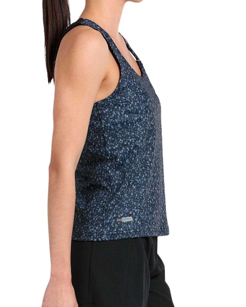 Con su diseño tipo tank top y espalda semiperforada, asegura una ventilación excepcional, perfecta para los días más calurosos. Confeccionada en un jersey de poliéster elástico, proporciona una textura suave y flexible que se adapta a cada movimiento.