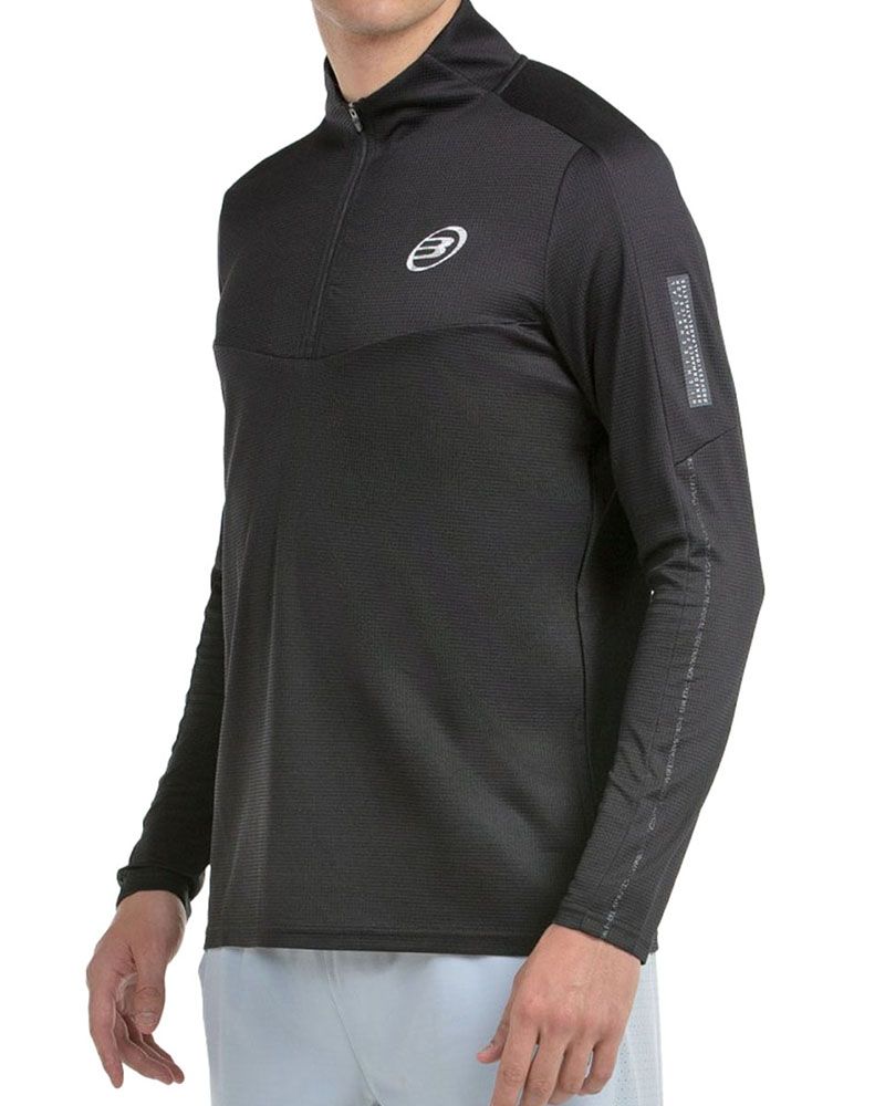 La Camiseta Bullpadel Lanco en color negro es una prenda técnica de manga larga diseñada para maximizar tu rendimiento en la pista. Pertenece a la línea Proline y está confeccionada en tejido interlock con textura cuadrilla. Su diseño ergonómico y media cremallera aportan comodidad y versatilidad. Fabricada en micropoliéster ligero, incluye la tecnología Quickerdry, que mejora la transpiración y mantiene la piel seca, ideal para los entrenamientos más exigentes. Esta camiseta combina estilo y funcionalidad, convirtiéndose en un imprescindible para cualquier jugador de pádel.