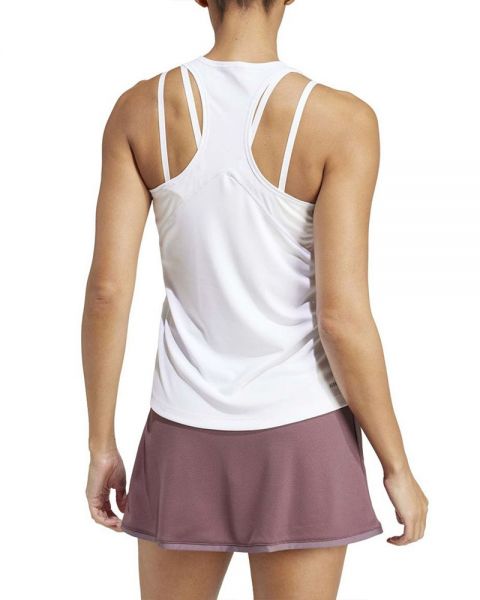 La Adidas Club en color blanco es una camiseta sin mangas para mujer confeccionada con tejido de poliéster 100% que destaca por su ligereza, suavidad y transpirabilidad, ya que incorpora la tecnología de secado rápido AEROREADY. Esta tecnolgía absorbe y evapora el sudor y la humedad de la piel para aportar frescura y comodidad sin igual.