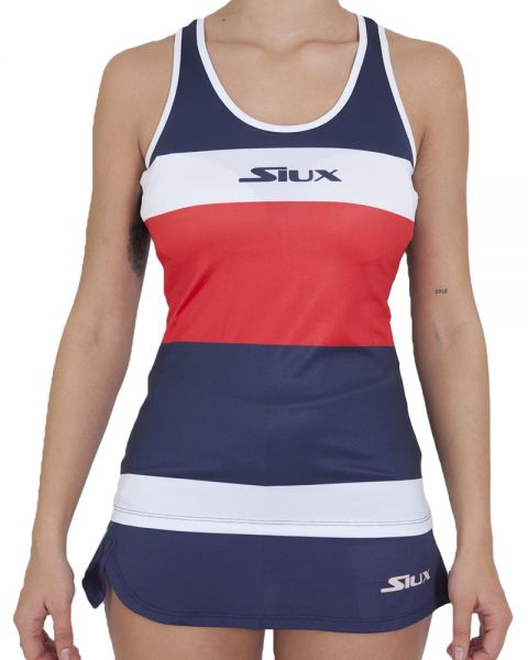 Camiseta Siux Luxury Blanco Azul Mujer - Es la camiseta perfecta para las jugadoras que desean ir muy frescas a la pista de pádel. Es una prenda perfecta para los días de verano y los días calurosos, fue creada con una tela que tiene la propiedad de secar con facilidad. Se verá muy bien con tus faldas.