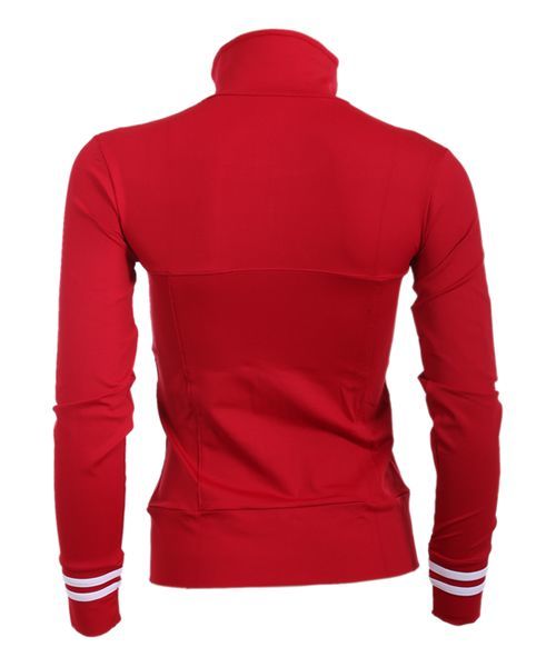 Chaqueta MI entallada para favorecer a la figura, creada en cortes verticales ortogonales. Tiene detalles de bandas paralelas en los puños y cuello interior, utilizando tonos contrapuestos, ya sea blanco o rojo. Confeccionado en un tejido técnico que absorbe y elimina la humedad evitando incomodidad. Cuello diseño chimenea para darle un toque diferente. Las costuras se han hecho planas para prevenir rozaduras. Cremallera y bolsillos en la parte delantera.