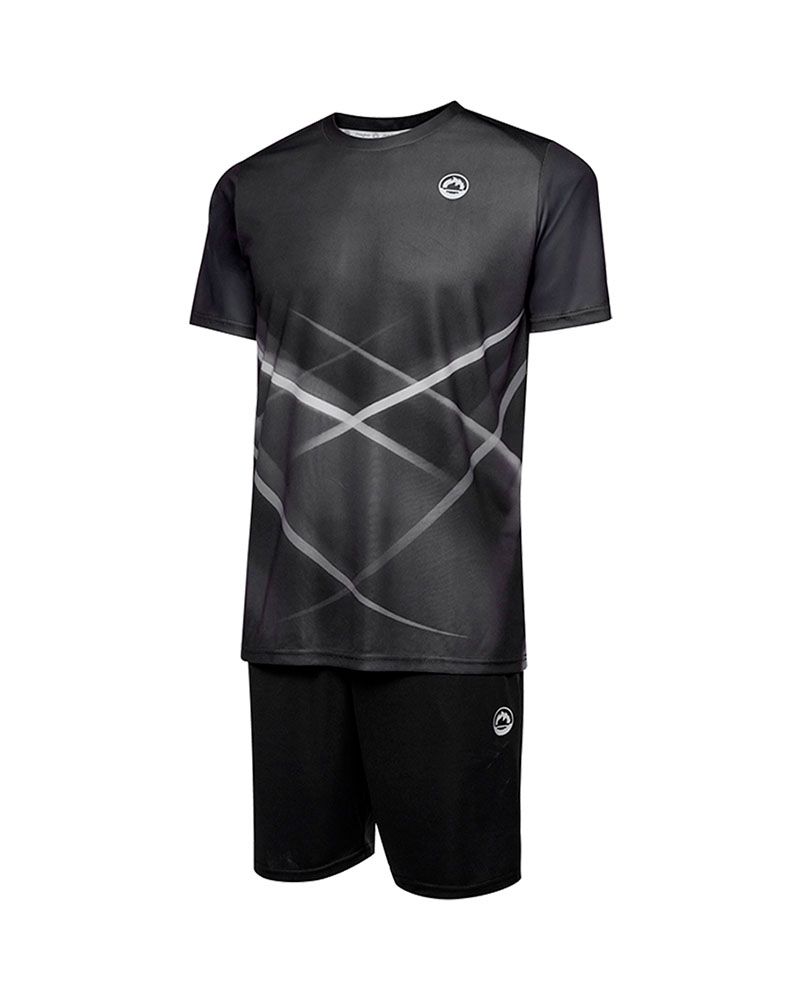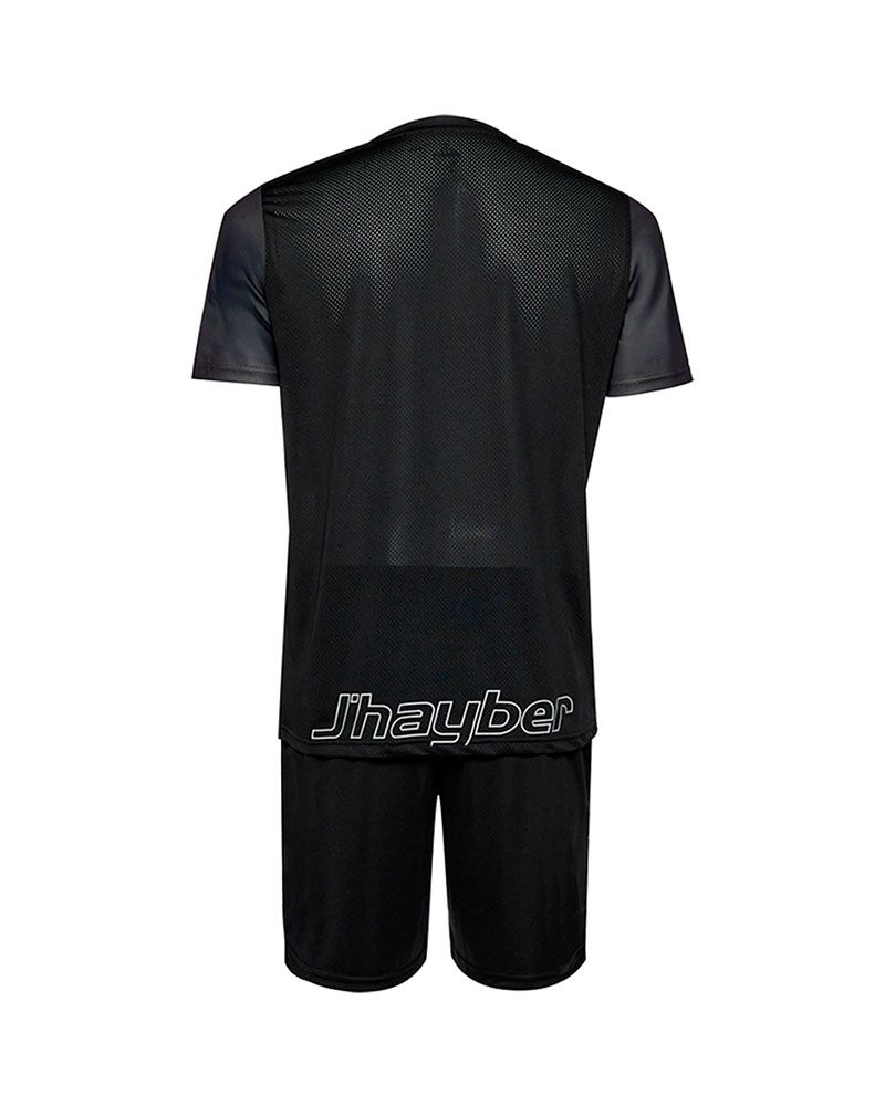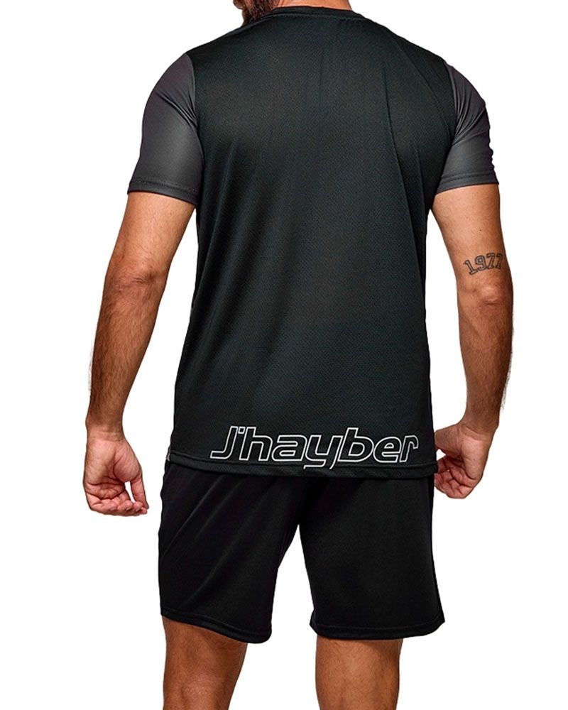 El conjunto J.Hayber Volea es ideal para quienes desean un estilo deportivo que combine modernidad y funcionalidad. La Camiseta negra, con un diseño cruzado en contraste, añade un toque de dinamismo sin sacrificar la elegancia de un diseño limpio. El pantalón complementa el conjunto con un look uniforme y contemporáneo. Ambos están hechos con materiales ligeros que permiten moverte con total libertad, perfectos para entrenamientos intensos o sesiones diarias.