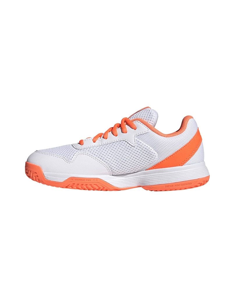 Chez Street Padel, nous nous engageons à offrir le meilleur équipement dès les premiers pas. Les Adidas Courtflash Orange Junior sont idéales pour les garçons et les filles qui souhaitent améliorer leur jeu avec des chaussures confortables, durables et légères. De plus, leur utilisation de matériaux recyclés en fait une option plus durable. Équipez les futurs champions avec des Chaussures qui accompagnent chaque pas sur le court.
