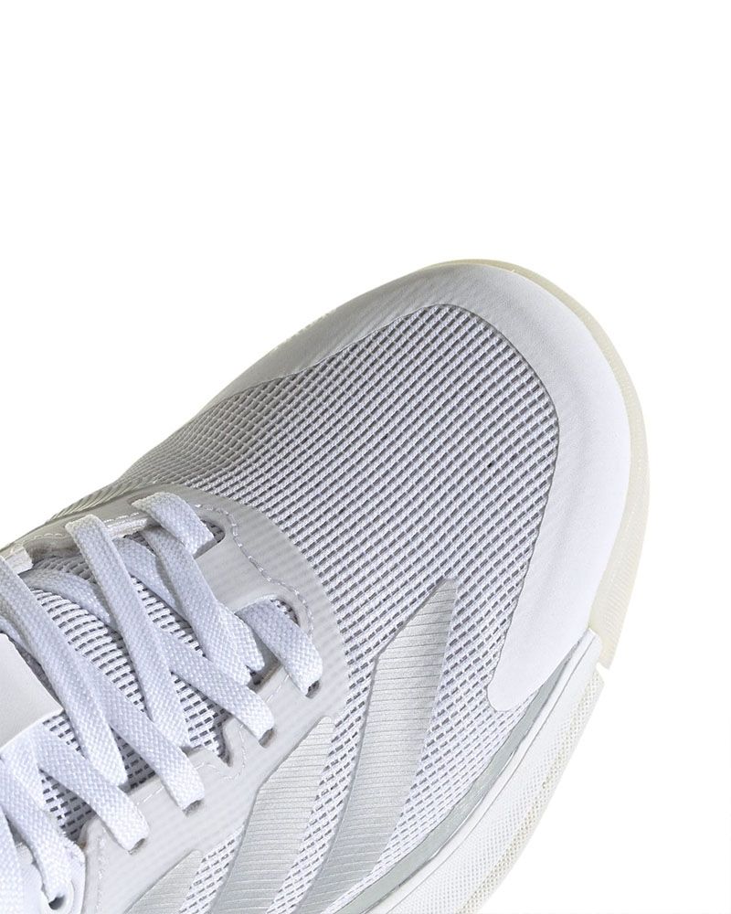 - Semelle Adiwear, avec son motif exclusif Multi-Traction, est spécialement conçue pour le padel, incorporant des chevrons divisés, des croix de soutien et un point de rotation qui facilitent les mouvements agiles et les virages rapides avec un contrôle total.