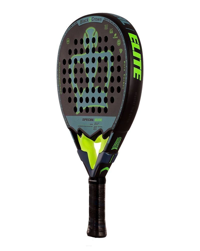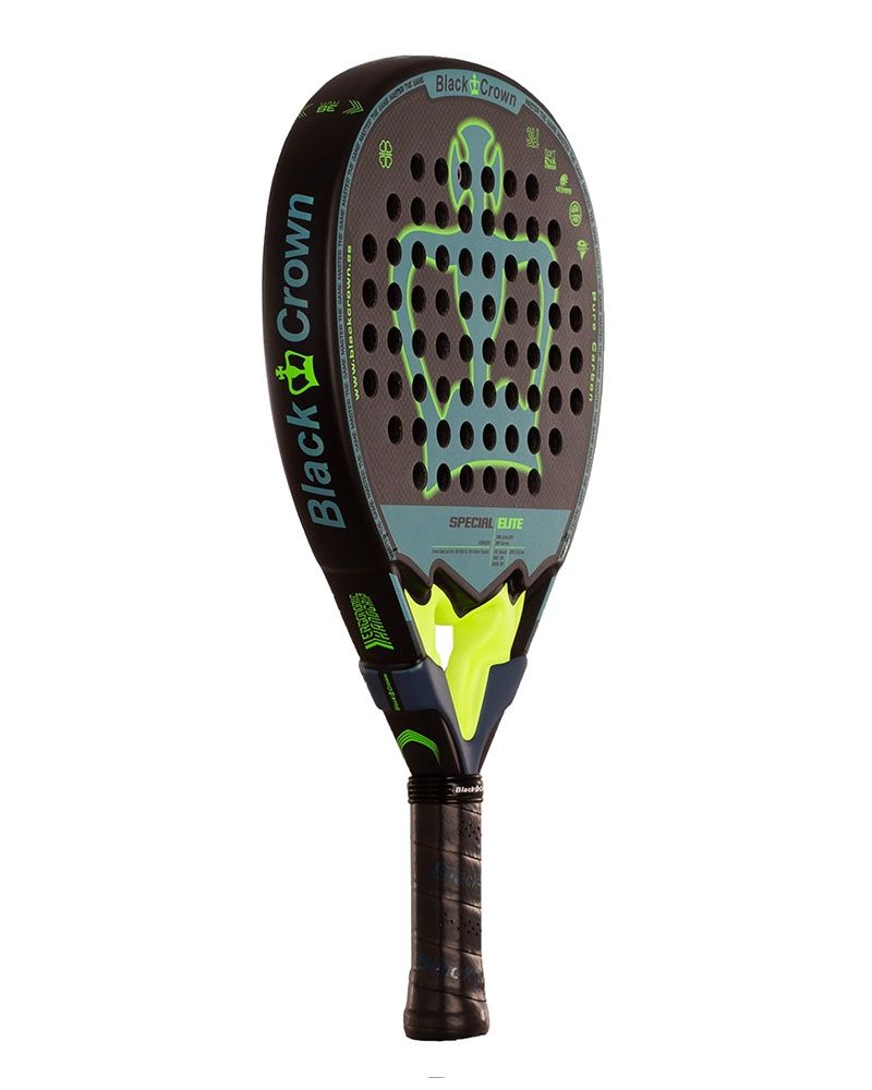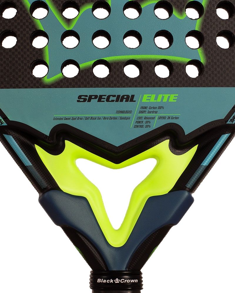 La Black Crown Special Elite est une raquette haut de gamme, conçue pour les joueurs avancés qui souhaitent un équilibre parfait entre puissance et contrôle, mais avec une touche plus douce et confortable que la Special Max. Son design en forme de larme lui confère une polyvalence à toutes les étapes du jeu, offrant une réponse exceptionnelle tant en défense qu'en attaque. C'est le choix idéal pour ceux qui recherchent une raquette complète, avec une grande jouabilité et une sensation agréable à chaque coup.