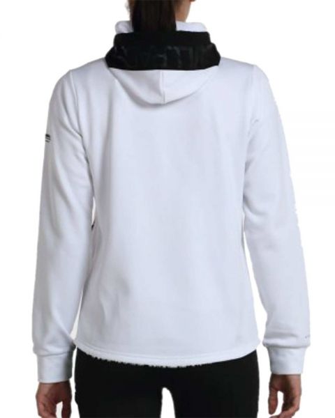 Sweat-shirt Femme Bullpadel Irene Blanco 012 pour votre saison hivernale de padel. Sweat zippé, avec capuche et poches latérales zippées. Couleur blanche de base combinée avec des détails noirs. Sweat-shirt de la ligne Winter de Bullpadel.