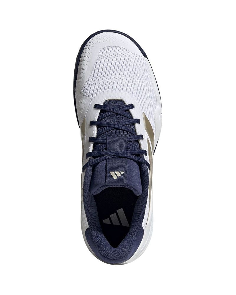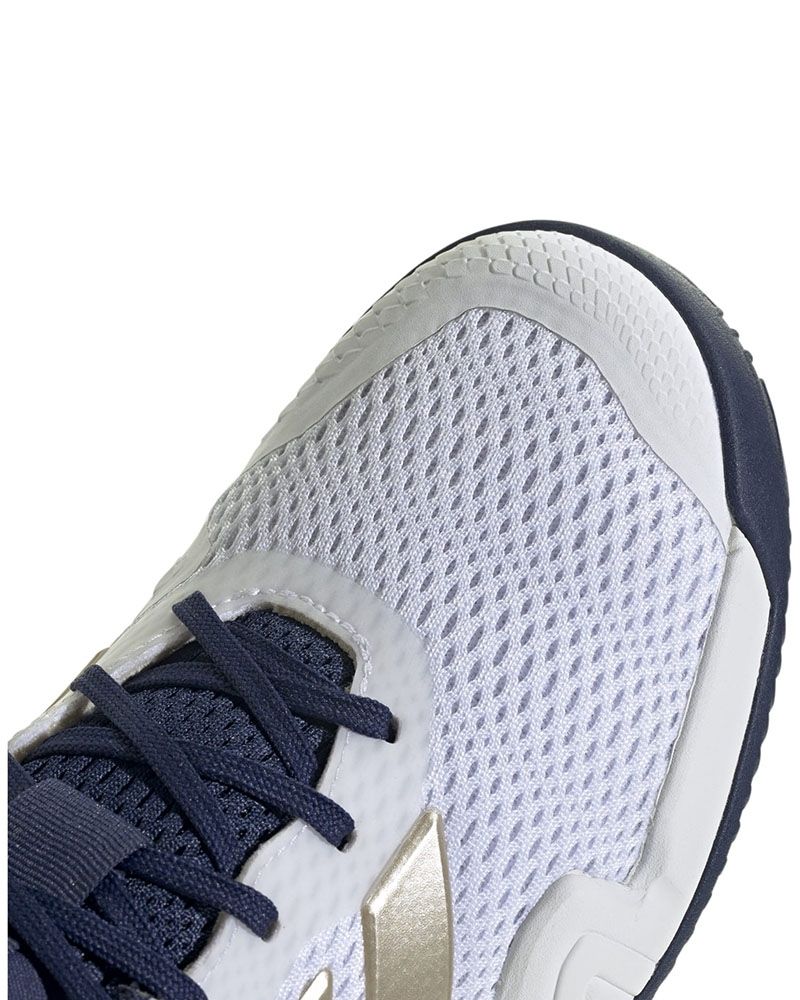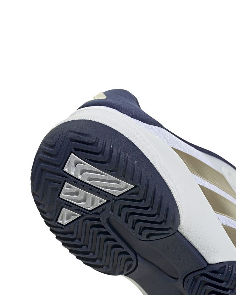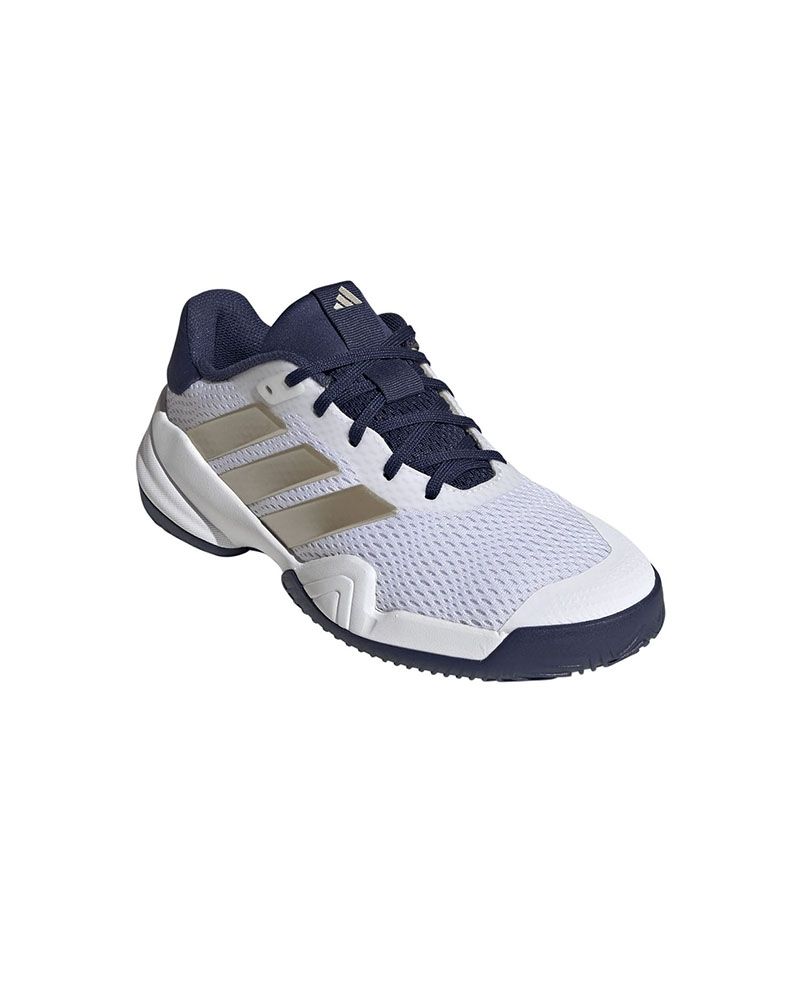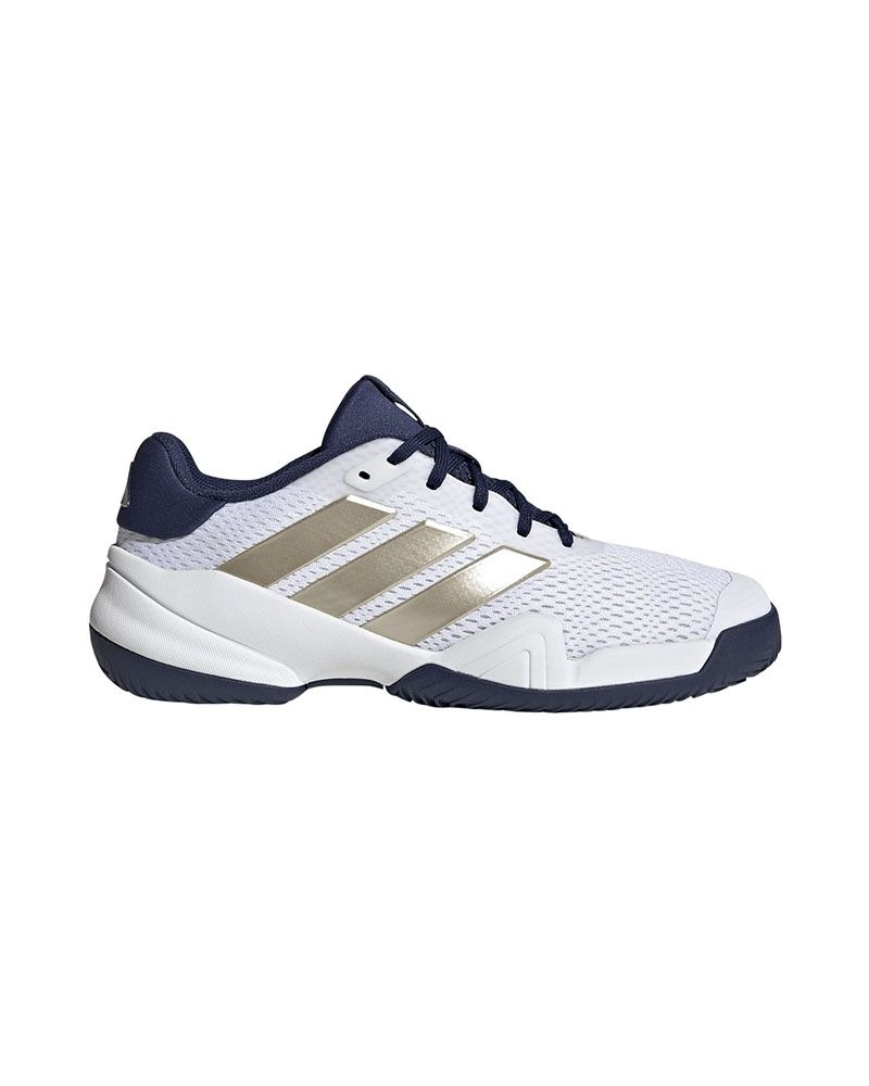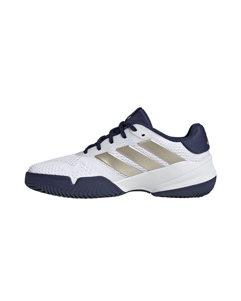 Adidas présente les Barricade K Blanc/Marine, spécialement conçues pour les jeunes passionnés de tennis et de padel. Ces Chaussures Junior offrent une combinaison parfaite de stabilité et de confort, idéales pour supporter le rythme intense des matchs. La semelle en caoutchouc, hautement résistante, offre une traction exceptionnelle sur le court, permettant des changements de direction rapides et sûrs sans compromettre le contrôle.