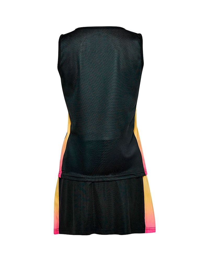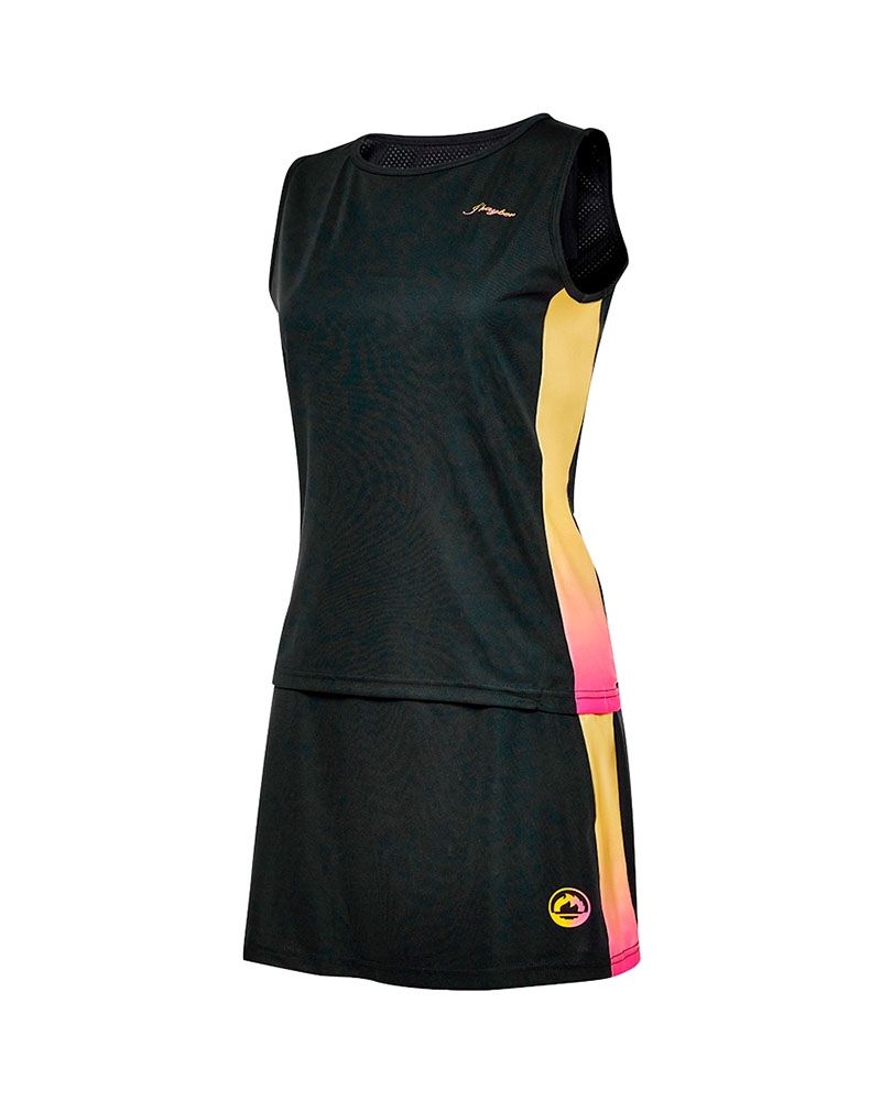 L'ensemble sportif Sunset de J'hayber se distingue par son design contemporain et plein d'énergie, idéal pour les sportives qui souhaitent allier performance et style sur le terrain comme lors de leurs entraînements. Son apparence sophistiquée est complétée par des panneaux latéraux qui évoquent les couleurs de l'aube, ajoutant une touche vibrante et distinctive à l'ensemble.