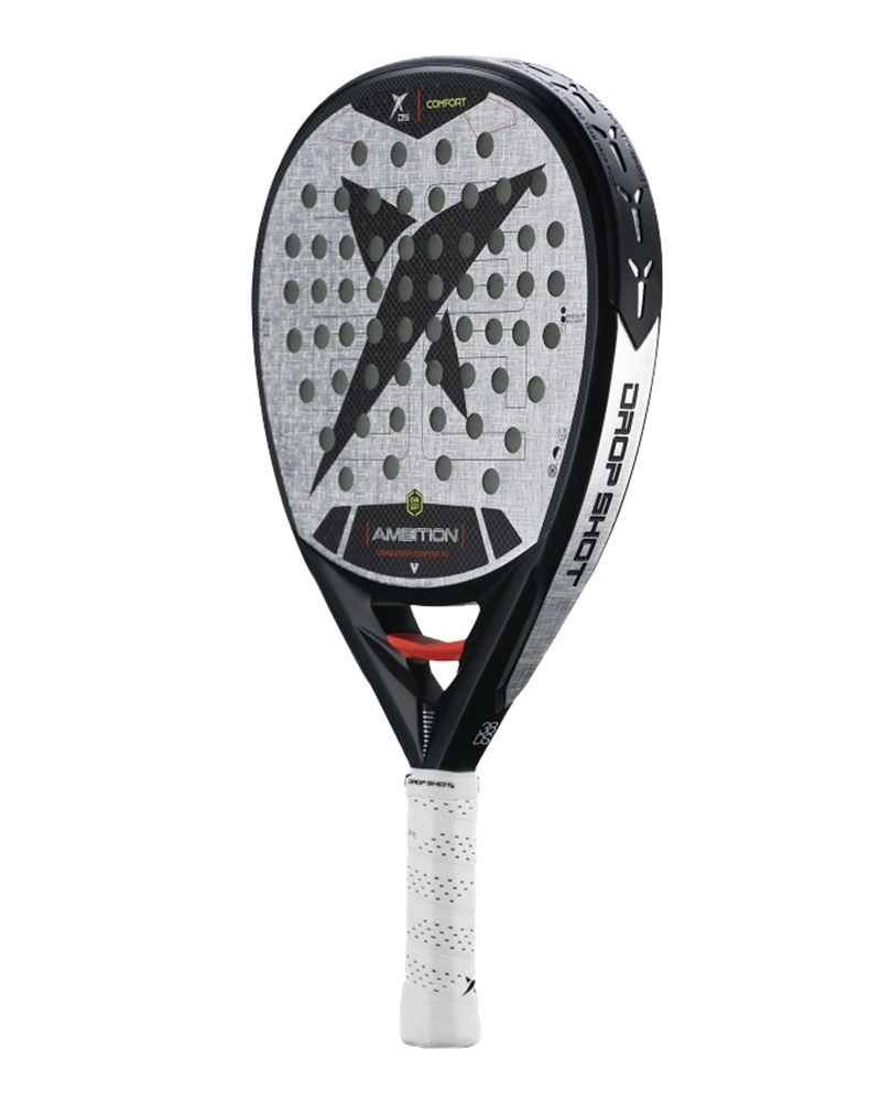 La Drop Shot Conqueror Confort 1.0 2025 appartient à la collection Ambition 2025, créée pour les joueurs à la recherche d'une raquette haut de gamme alliant style et performance. Avec un design élégant qui mélange des détails noirs, argentés et rouges, cette raquette devient une option exceptionnelle pour ceux qui veulent faire la différence à chaque match.