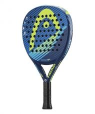 La nueva pala de Head cuenta con el sistema C-ring para mejorar su punto dulce y por lo tanto conseguir mejor rendimiento en cada golpe. Con un diseño en tonalidades azules y amarillas, la Tornado hace honor a su nombre.