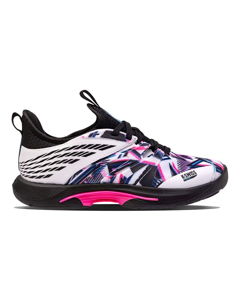 Ces chaussures pour hommes KSwiss sont conçues pour ceux qui recherchent la vitesse sans perdre en stabilité. Sa structure légère permet des mouvements plus agiles, tandis que son amorti avancé protège vos articulations contre les impacts lors des matchs intenses. Design accrocheur avec imprimé et combinaison de couleurs attrayante.