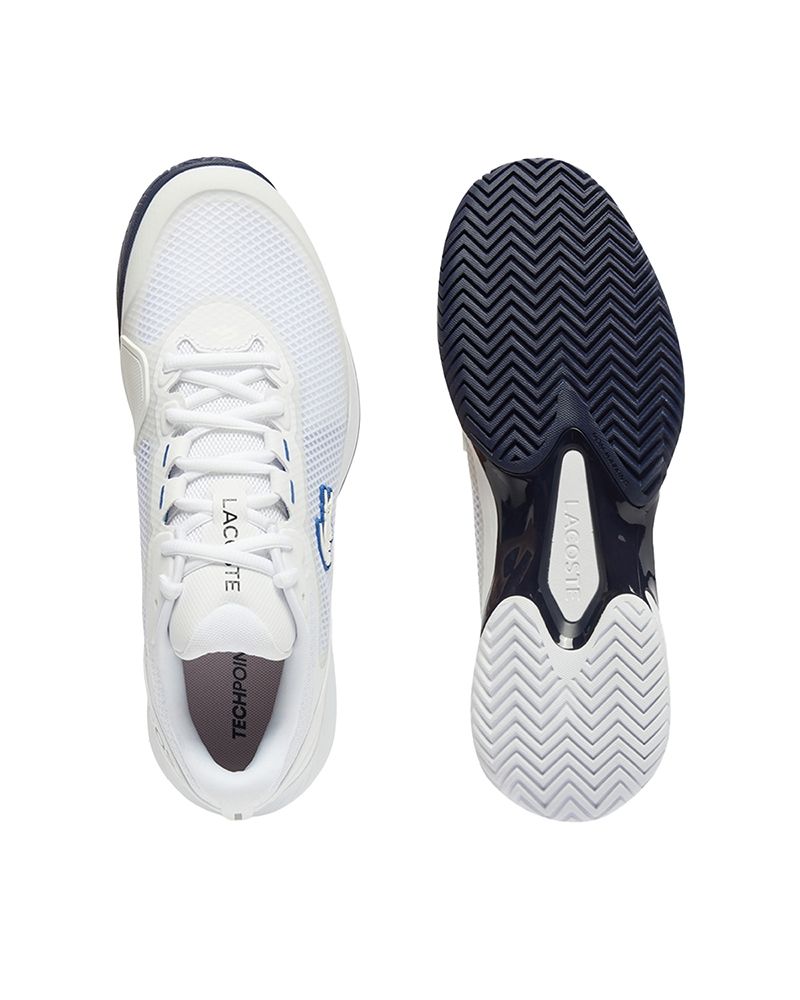 Baskets Lacoste Tech Point pour hommes - Blanc Ils offrent des performances supérieures à chaque jeu. Sa tige en mesh respirant garde les pieds au frais, tandis que la semelle à crampons en caoutchouc assure une excellente adhérence sur le terrain. Avec une combinaison de polyester recyclé, de polyuréthane et de nylon , ces baskets sont durables et respectueuses de l'environnement.