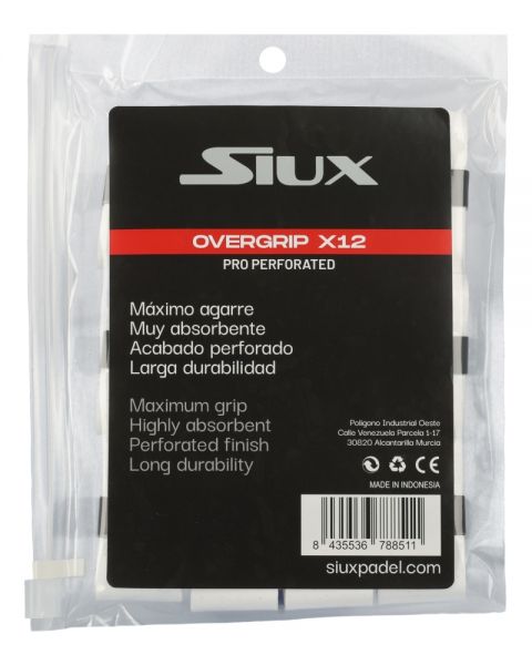 L' Overgrip Pro Perforated x12 de Siux est l'accessoire parfait pour votre raquette de padel, car il garde vos mains au sec et au frais tout au long du jeu grâce à sa finition perforée , qui laisse passer l'air pour une bonne absorption de la transpiration . De plus, il garantit une adhérence maximale pour une plus grande précision et fermeté dans la frappe. Sa haute résistance à l?usure assure une bonne durabilité. Comprend 12 unités.