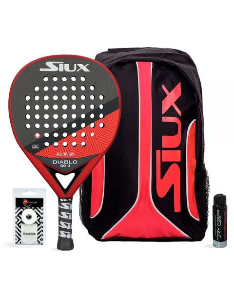 Ce pack comprend une pagaie Siux Diablo Go 3, une option puissante et précise, et le sac à dos Siux Fusion Red , conçu pour transporter confortablement tout votre équipement. Il dispose également d'un protecteur et surgrip Shockout 100-0062 Smu et d'un spray Dry Grip 100 ml pour garder votre raquette dans un état optimal.