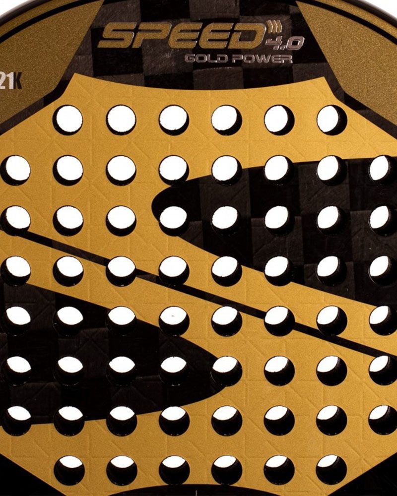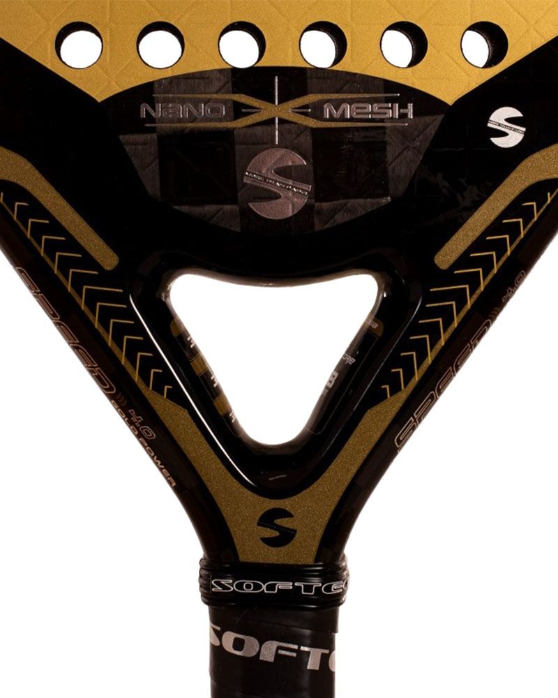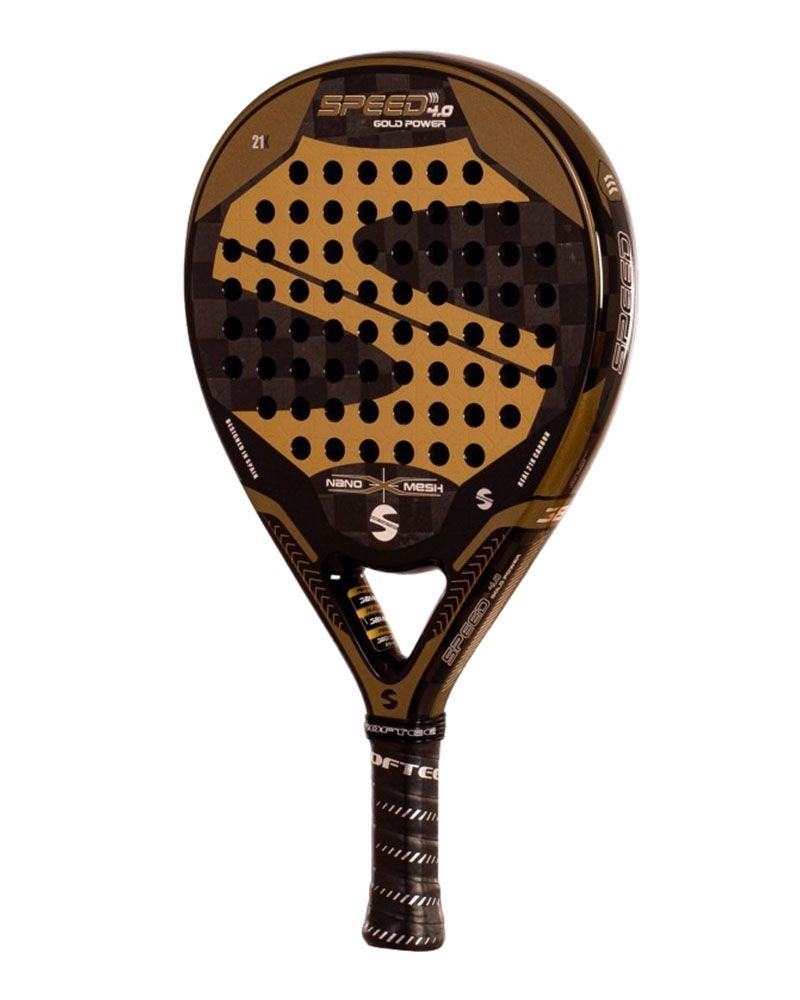 Conçue pour les joueurs professionnels ou avancés, la Speed Gold Power 4.0 Nano Mesh est le choix parfait pour ceux qui recherchent une raquette complète et adaptable. Idéale pour alterner entre des jeux défensifs et des smashs offensifs, elle offre un excellent contrôle sans sacrifier puissance. Son équilibre équilibré et son toucher ferme permettent une maîtrise totale depuis le fond du court. Légère et en forme de goutte d'eau, elle s'adapte à un style de jeu moderne et dynamique. De plus, son design doré avec des finitions Premium ajoute une touche de distinction.