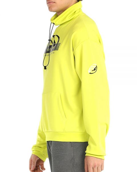 Il affiche un style incroyablement moderne grâce à la couleur jaune fluor du nouveau sweat Bullpadel Kachin , conçu pour l'entraînement et les matchs.