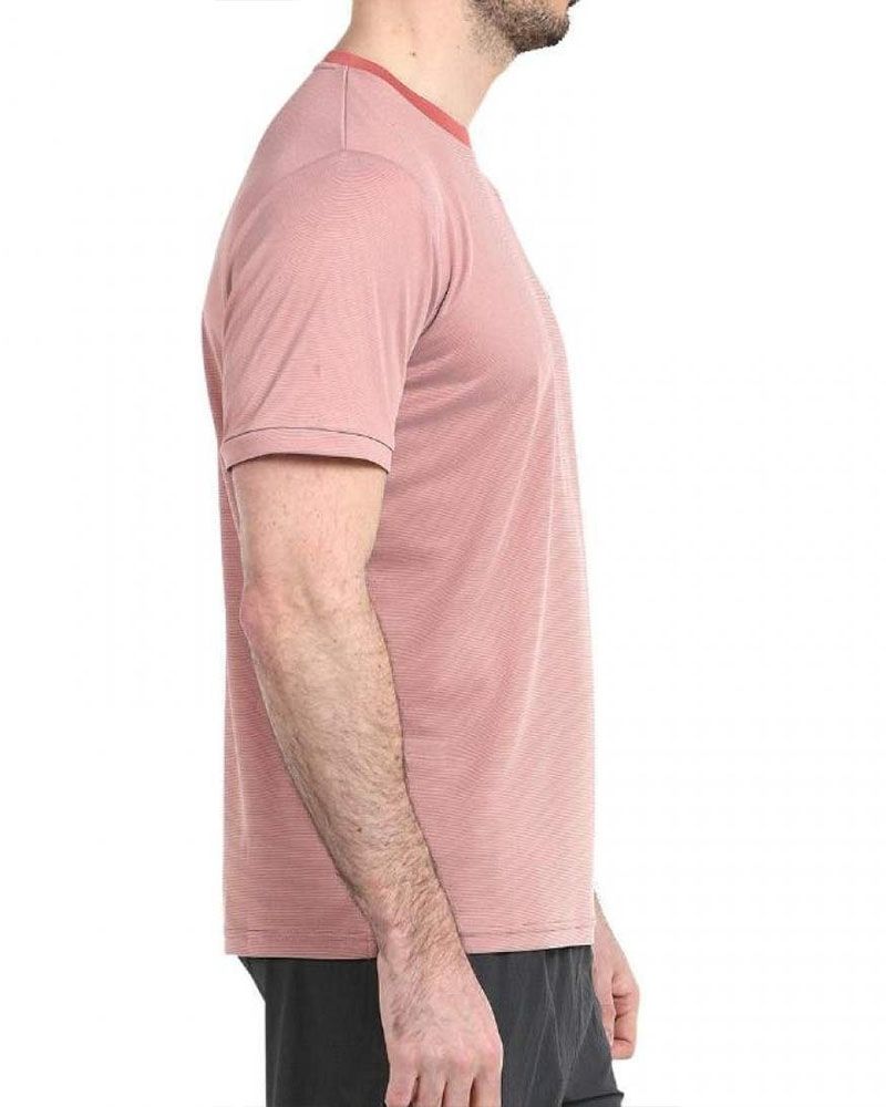 Le T-shirt Bullpadel Useme pour homme est conçue pour ceux qui apprécient le confort, la respirabilité et un design technique sophistiqué. Fabriquée en polyester recyclé dans un tissu interlock rayé, elle utilise du fil Repreve certifié, une fibre durable qui combine douceur et résistance, respectant l'environnement.