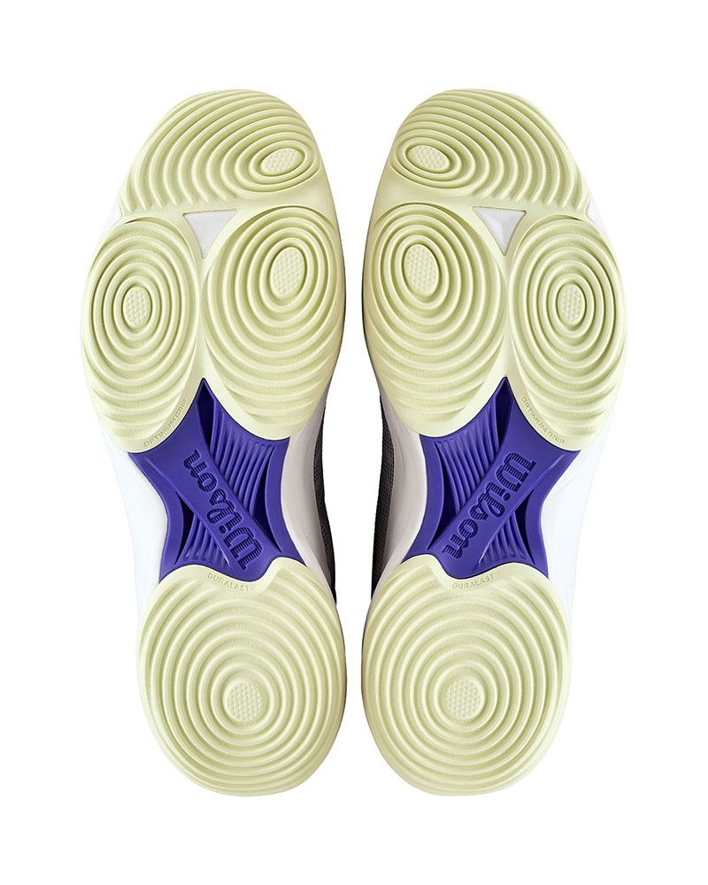Sont conçues pour maximiser vos performances sur le court de padel. Leur structure technique est optimisée pour des mouvements rapides et un contrôle total. La semelle Duralast, connue pour son exceptionnelle durabilité, garantit une traction constante sur toutes les surfaces, même lors des déplacements les plus exigeants. Le design Optimum grip de la semelle améliore la capacité de rotation et de pivotement, vous permettant de réagir rapidement tant en défense qu'en attaque.