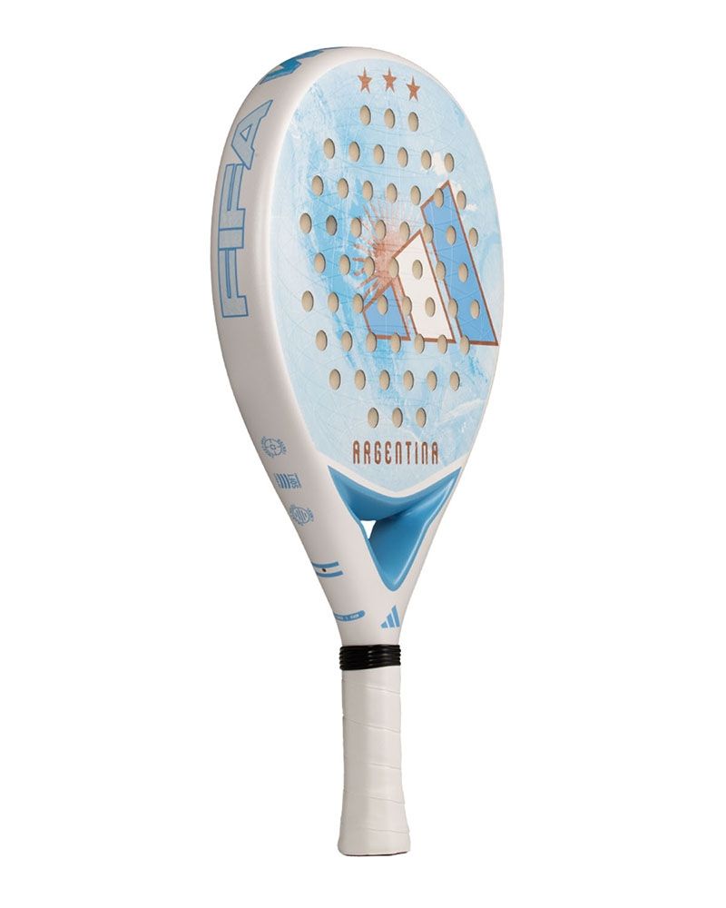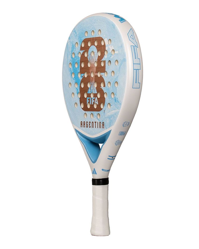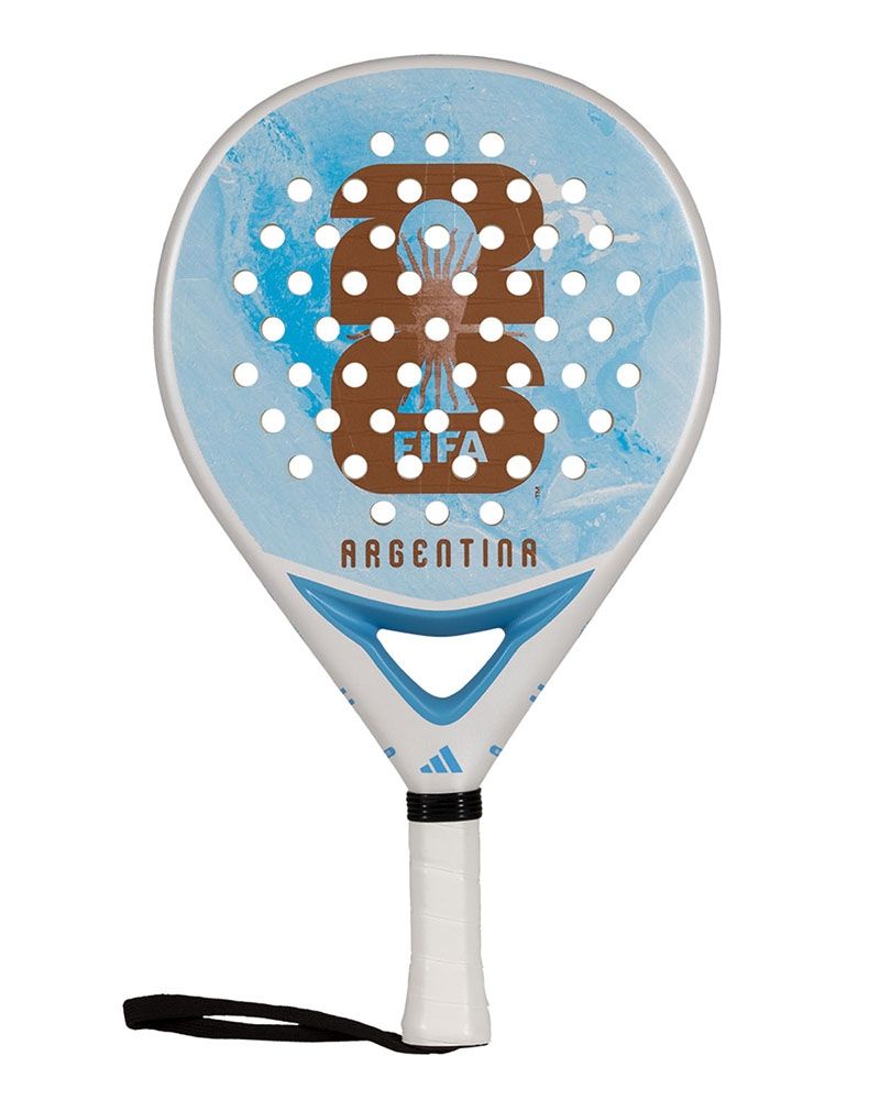 Scopri la racchetta Argentina World Cup 2026 di Adidas, una creazione unica che unisce lo spirito del padel e del calcio. Ispirata ai colori e all'essenza dell'Argentina, questa racchetta in edizione speciale è progettata per offrire un gioco preciso, stabile e confortevole. La sua forma rotonda e il punto dolce centrato garantiscono un controllo eccezionale, ideale per chi desidera dirigere la palla con precisione da qualsiasi angolo del campo.