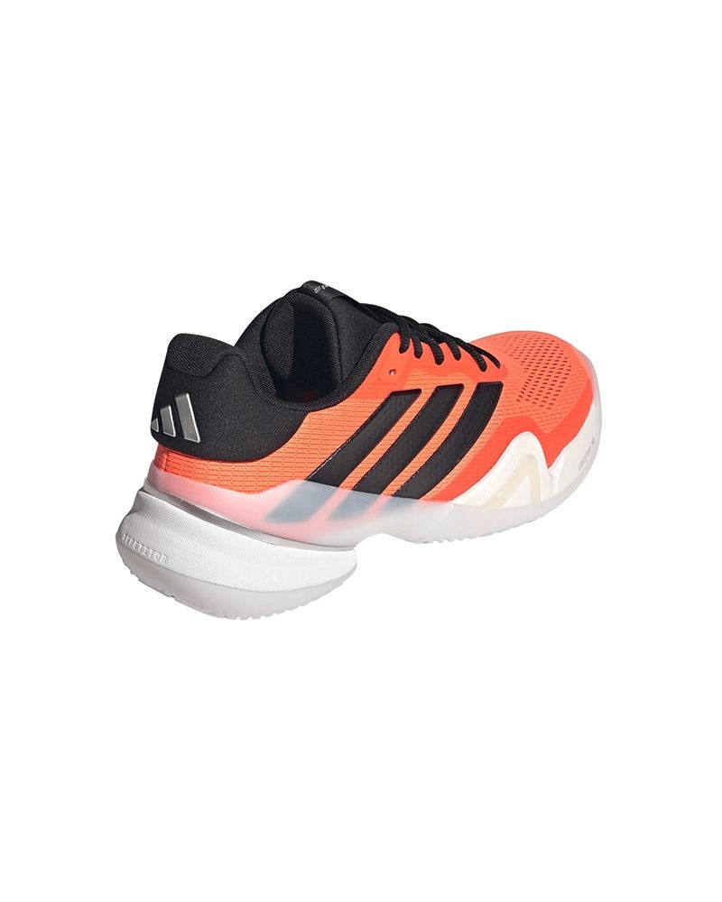 Adidas presenta le Barricade 14 in un vibrante colore arancione, fondendo leggerezza, durata e un ritorno di energia costante. Queste scarpe presentano una suola esterna in gomma e un design a spina con tecnologia Lighttraxion, che assicura movimenti rapidi e sicuri durante gli scambi prolungati.