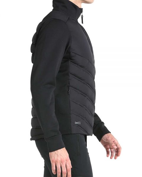 Giacca a vento ibrida stile giacca in nero progettata con maniche, fianchi e spalle in Interlock spazzolato all'interno, mentre la parte anteriore e posteriore sono imbottite con fibre sintetiche con le stesse caratteristiche isolanti della piuma naturale e la capacità di respingere l'acqua del poliestere con SEAL 3D sigillatura . Inoltre include tasche laterali con cerniera e un'altra con decorazione sulla zona del petto a sinistra.