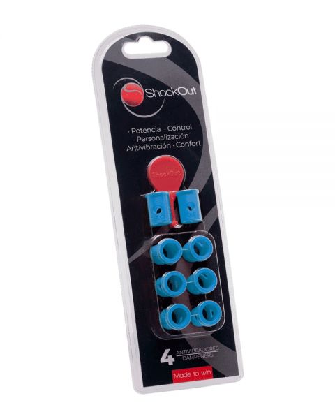 Gli antivibranti ShockOut in blu sono fabbricati con i migliori materiali cercando di proteggere a qualsiasi tipo di giocatore dalle lesioni più comuni nel padel, oltre ad aggiunger un'extra di protezione alla racchetta poiché riducono l'impatto della pallina su la sua superficie, assorbendo parzialmente la forza d'impatto.