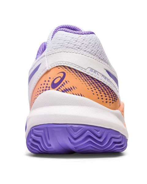 Le nuove scarpe Asics Gel-Resolution 9 Gs Clay sono arrivate in bianco e viola in modo che il tuo piccolo possa godersi al massimo i suoi giochi di paddle.