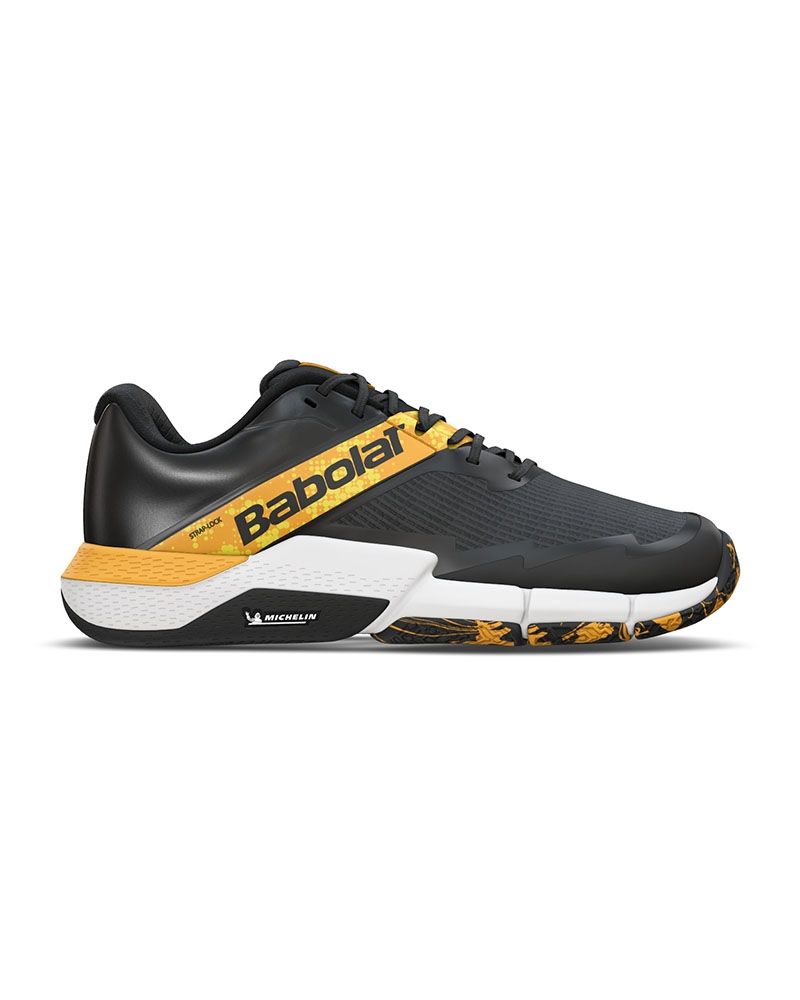 Le Babolat Movea 2 Men Nero sono create per offrirti sicurezza e stabilità sul campo da padel. La loro innovativa suola fornisce un equilibrio perfetto tra ammortizzazione e flessibilità, permettendoti di muoverti con agilità e fiducia. La rete traspirante assicura che i tuoi piedi rimangano freschi, offrendo un comfort eccezionale. Queste Scarpe sono ideali per giocatori di livello intermedio e avanzato, offrendo una calzata sicura e un supporto aggiuntivo ad ogni passo. Con la suola Michelin, progettata specificamente per il padel, godrai di una presa ottimale su qualsiasi superficie.