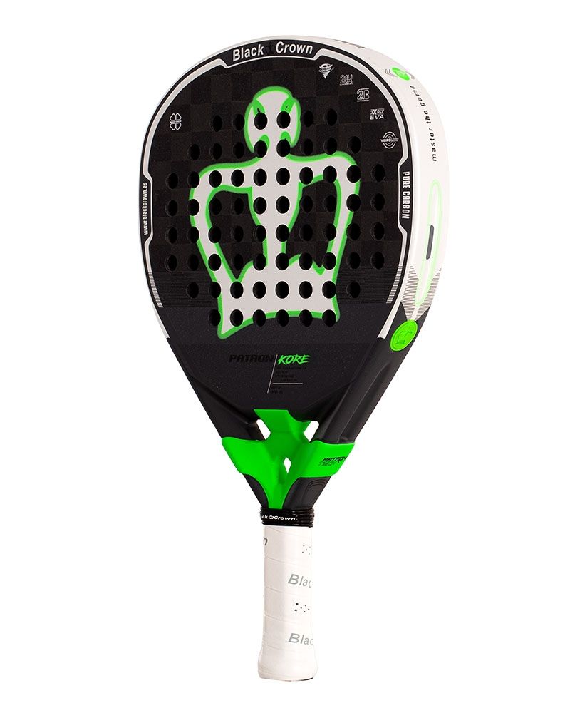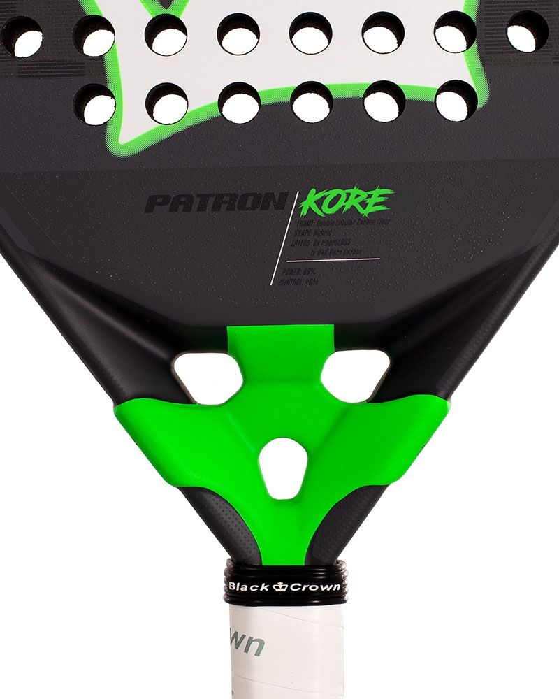 La Black Crown Patron Kore si presenta come il modello più sofisticato di tutta la linea, progettato per giocatori esperti che cercano una combinazione perfetta di potenza, comfort e prestazioni di alto livello. Questo modello integra le tecnologie più avanzate del marchio, offrendo un'esperienza di gioco fluida e solida, ottimizzata per ogni colpo. È una racchetta che non solo eccelle per la sua forza offensiva, ma anche per la sua capacità di proteggere il braccio e mantenere un tocco confortevole in ogni momento.