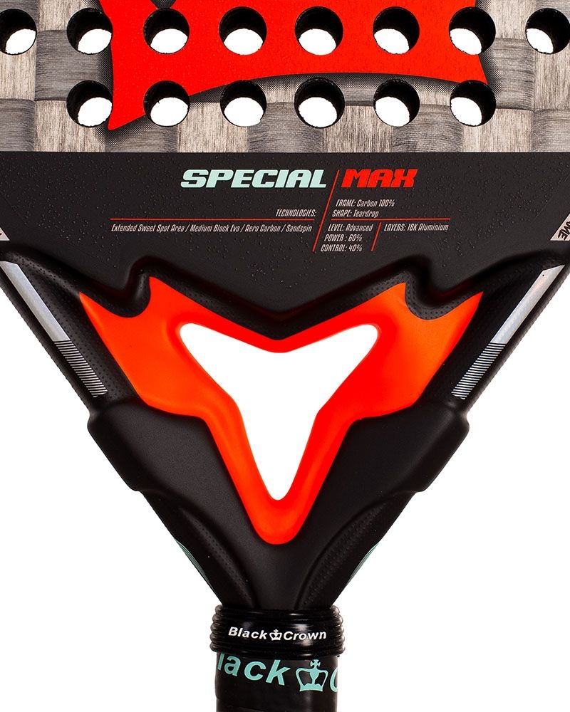 La Black Crown Special Max è il culmine delle racchetta, creata per quei giocatori avanzati e professionisti che desiderano raggiungere il massimo in potenza con ogni colpo. Progettata per uno stile di gioco offensivo, esplosivo e decisivo, questa racchetta si distingue per la sua struttura avanzata e la sua capacità di generare una forza superiore senza sacrificare la precisione. La sua forma a goccia, insieme a una costruzione di alta qualità, la rende lo strumento ideale per dominare in partite e situazioni di pressione.