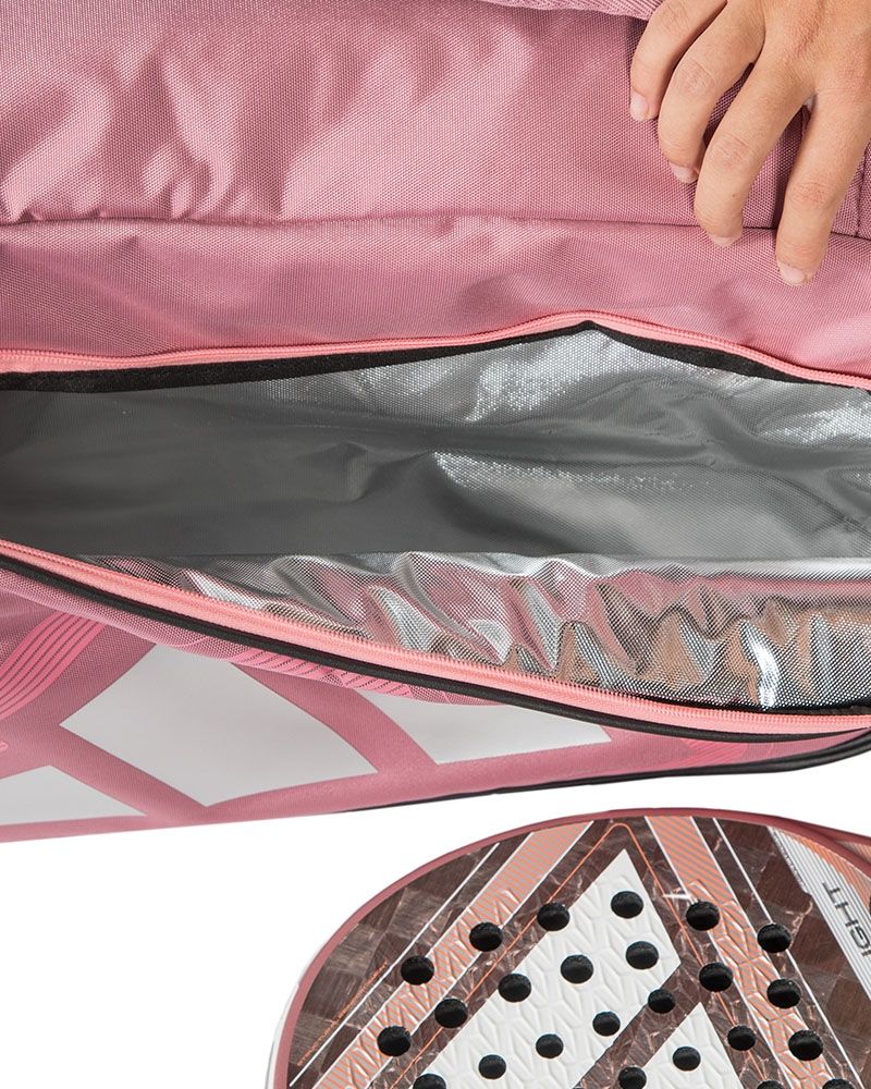 - Due tasche laterali con isolamento termico per proteggere le tue racchette.