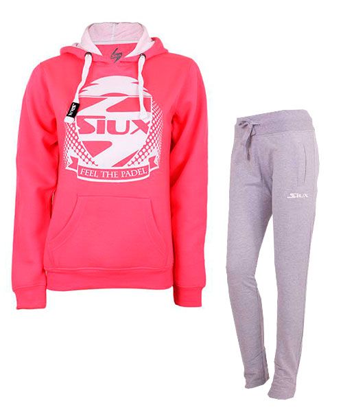EQUIPACION MUJER SIUX SUDADERA FUCSIA Y PANTALON GRIS