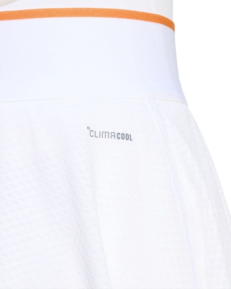 Dotata della tecnologia CLIMACOOL, questa gonna gestisce efficacemente l'umidità, espellendo il sudore e il calore corporeo per mantenerti fresca anche nelle partite più intense e calde. La vita elastica, insieme a un cordino interno, assicura una vestibilità comoda e sicura, mentre gli Pantaloncini interni integrati offrono supporto aggiuntivo durante il gioco. Le inserzioni in rete nell'orlo migliorano la ventilazione, riducendo l'accumulo di calore nelle zone di maggiore sforzo.