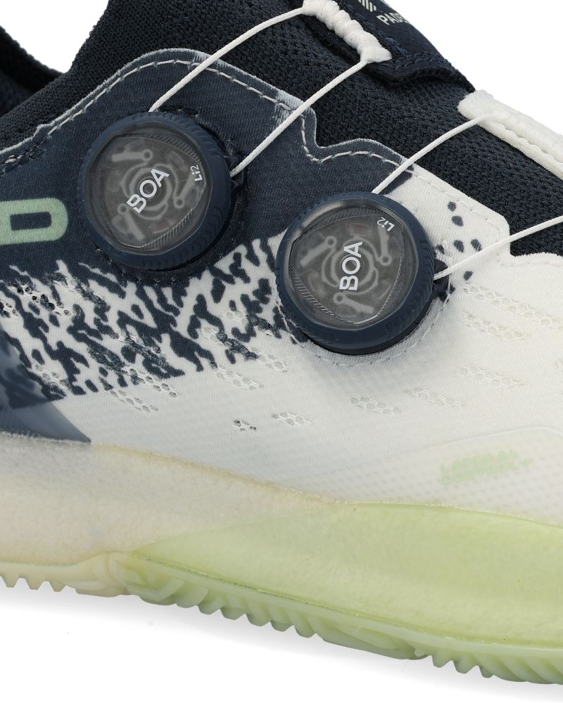 Un'opzione che ridefinisce il concetto di Confort e stabilità nel mondo del Padel. Queste scarpe sono state progettate con una struttura ottimizzata per il gioco contemporaneo, incorporando una suola esclusiva sviluppata in collaborazione con MONDO, il fornitore ufficiale di erba per Premier Padel. Il loro motivo a 360º consente movimenti rapidi e in più direzioni.