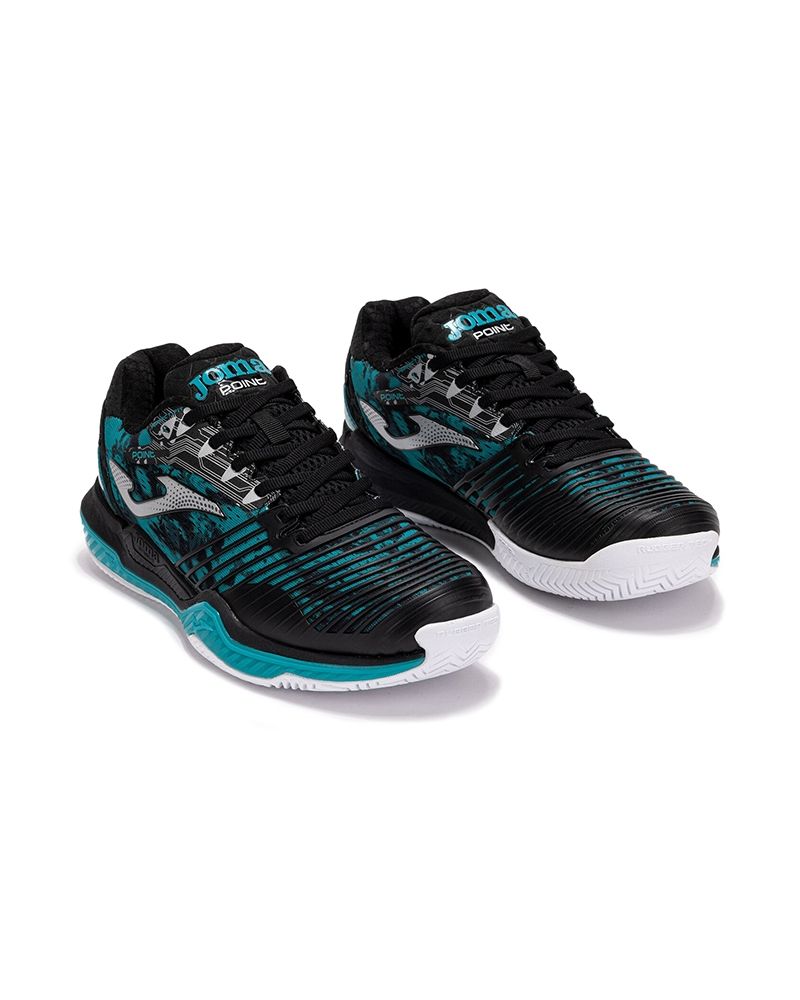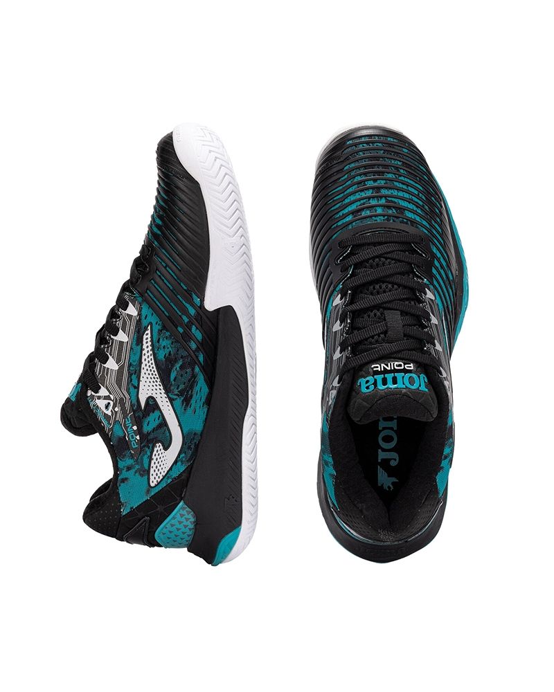 Le Joma Point Men Nero sono la fusione perfetta di tecnologia avanzata, comfort e design sportivo, pensate per massimizzare le tue prestazioni in ogni partita. Queste Scarpe da tennis, in elegante nero con dettagli blu, sono progettate per giocatori che apprezzano l'agilità, la stabilità e il Confort durante il gioco.