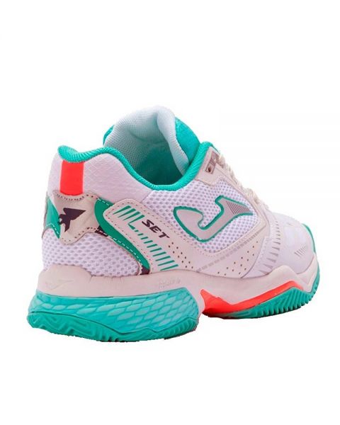 Distinguiti in importanti partite di padel con queste scarpe Joma Set 2115 bianche con acquamarina per giocatori professionisti di Padel.