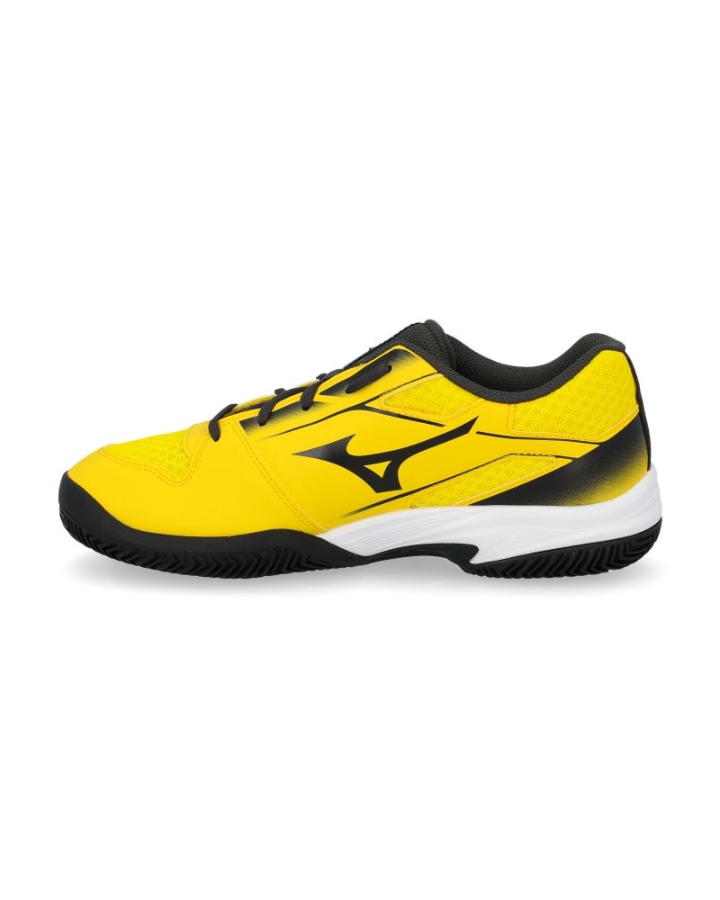 La Mizuno Break Shot 5 Padel in giallo con dettagli neri è stata progettata per i giocatori principianti che desiderano muovere i primi passi nel padel con sicurezza e comfort. La sua struttura flessibile e la suola piatta offrono una sensazione di totale libertà in ogni movimento, facilitando l'adattamento al campo.