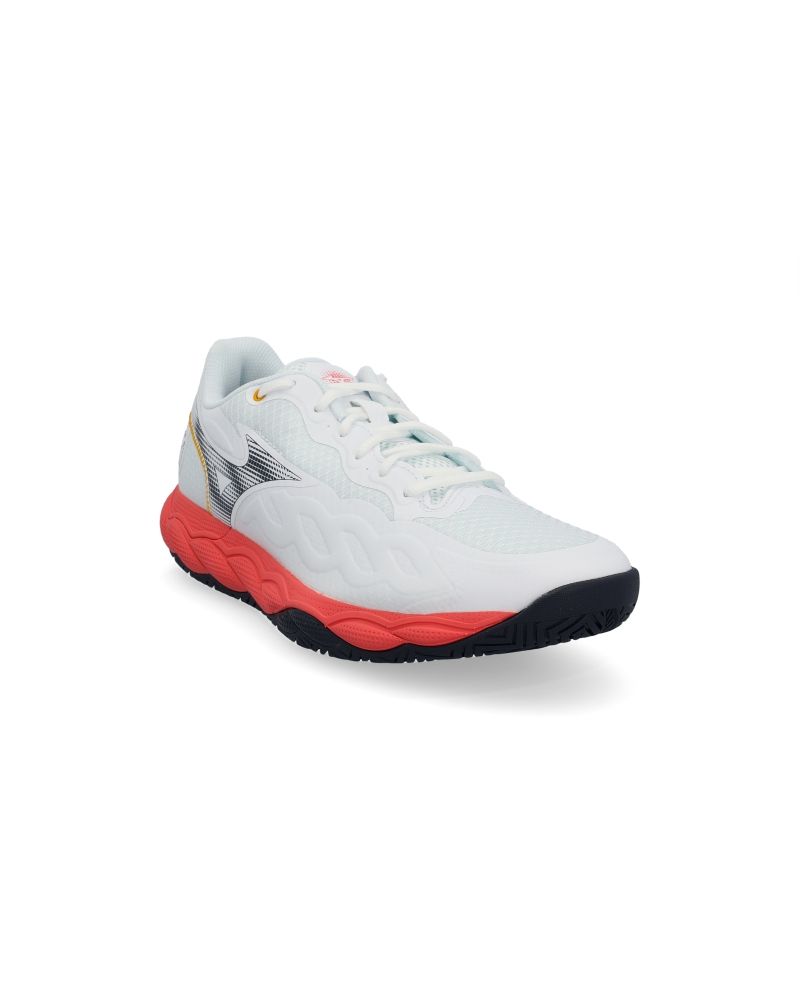 Con un design bianco, corallo e blu scuro , offrono un look accattivante e sportivo, mentre la suola All Court garantisce un grip efficace su qualsiasi superficie. Il sistema di ammortizzazione Mizuno Enerzy , combinato con Foam Wave, offre una corsa confortevole con un ottimo ritorno di energia e un eccellente assorbimento degli urti.