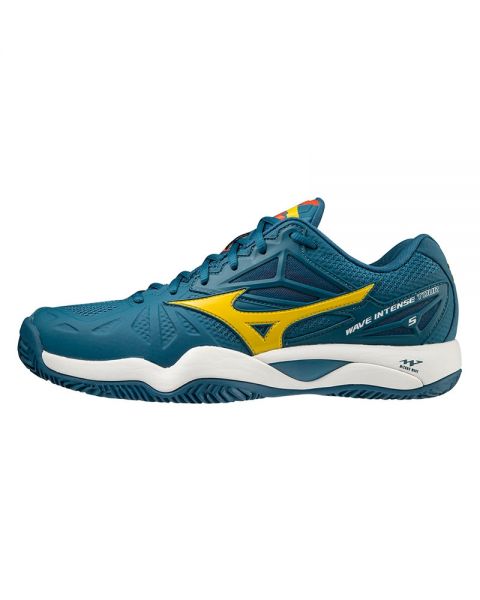 Fatti notare in campo con le nuove sneakers Mizuno Wave Intense tour 5 Clay Court in blu con bianco, realizzate con tessuti resistenti e tecnologie di alta qualità.