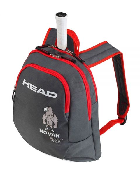 La mochila Head Novak para l los más pequeños de la casa. Fabricada con materiales de gran calidad y con un tamaño medio. Tiene la capacidad idónea para transportar todo lo necesario para los partidos de pádel y tenis de los niños. diseño original y moderno en color negro y rojo, con el dibujo de un pájaro, proporcionando un toque rebelde y desenfadado.