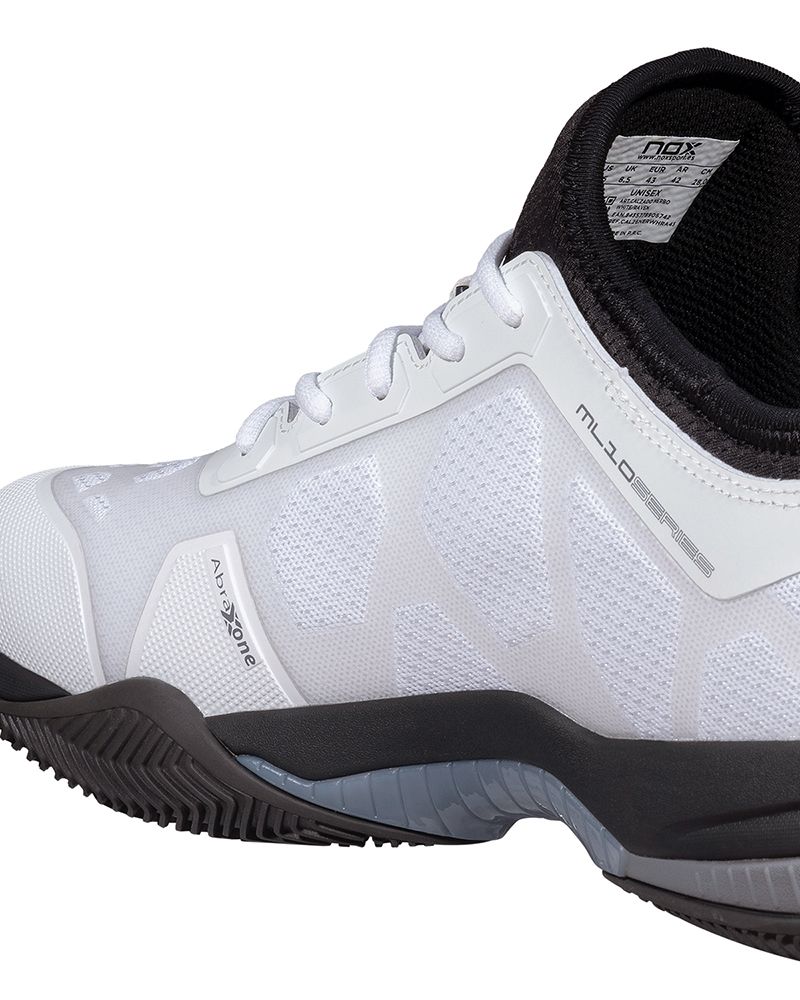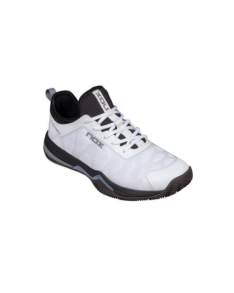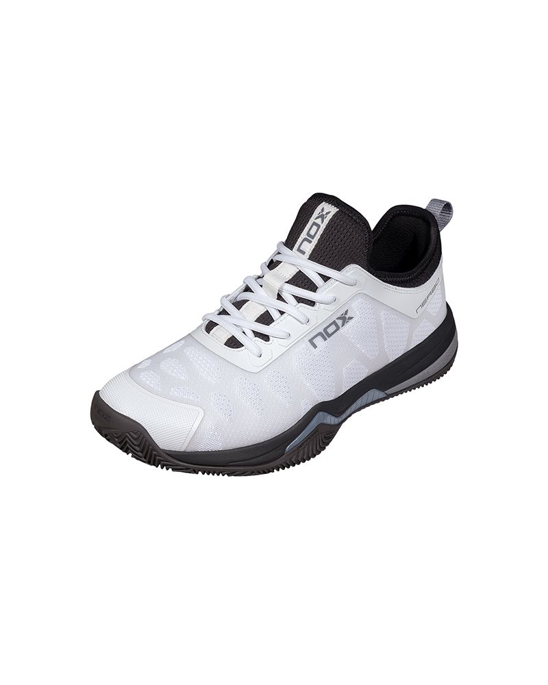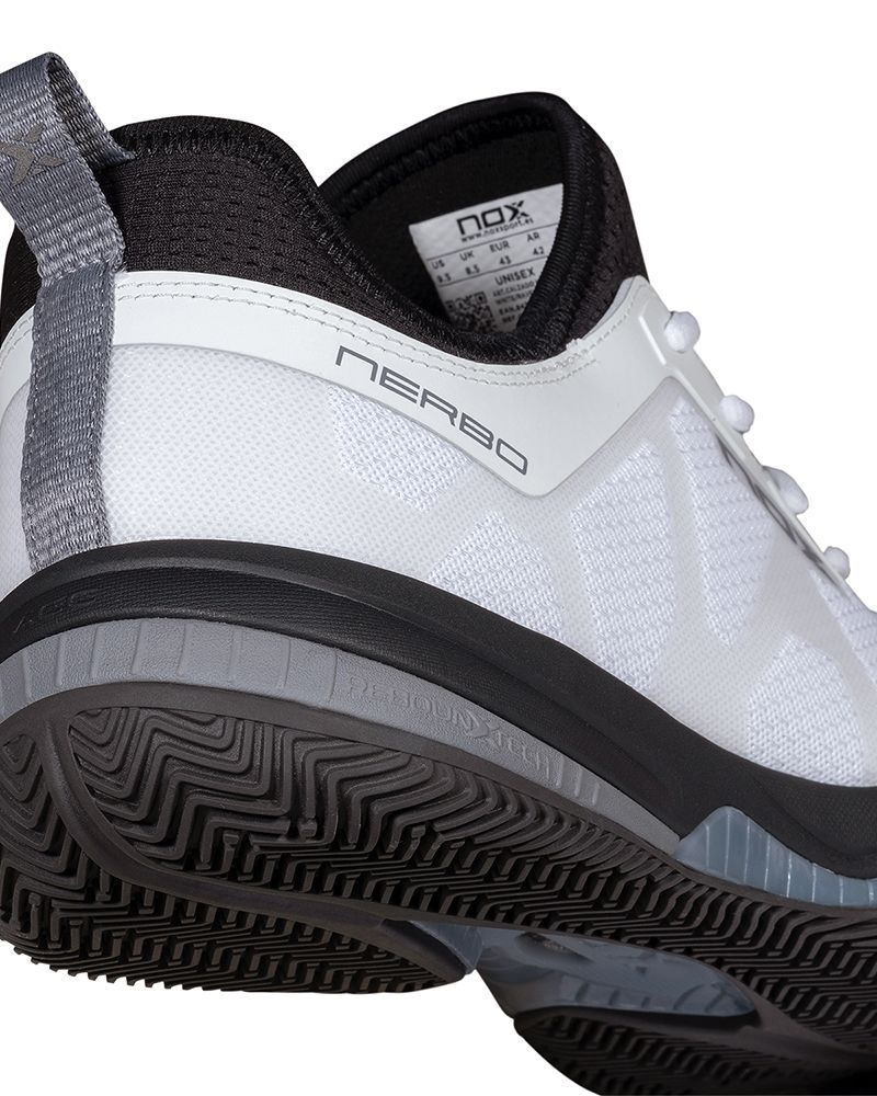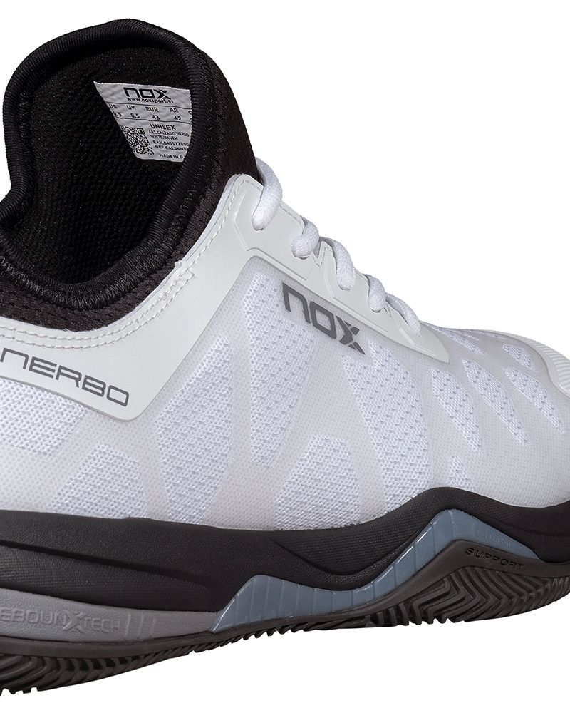 Le Nox Nerbo Bianco sono una vera innovazione nelle calzature tecniche per il padel. Il loro design incorpora una suola ibrida che combina spiga e microtacchetti, garantendo un'aderenza eccezionale su qualsiasi superficie. La tomaia è realizzata con una rete tecnica altamente traspirante e rinforzata con TPU, che offre resistenza, flessibilità e una durata superiore. La tecnologia AGG, che solleva leggermente il tallone, consente al giocatore di adottare una postura più reattiva, riducendo la tensione muscolare e facilitando movimenti rapidi.